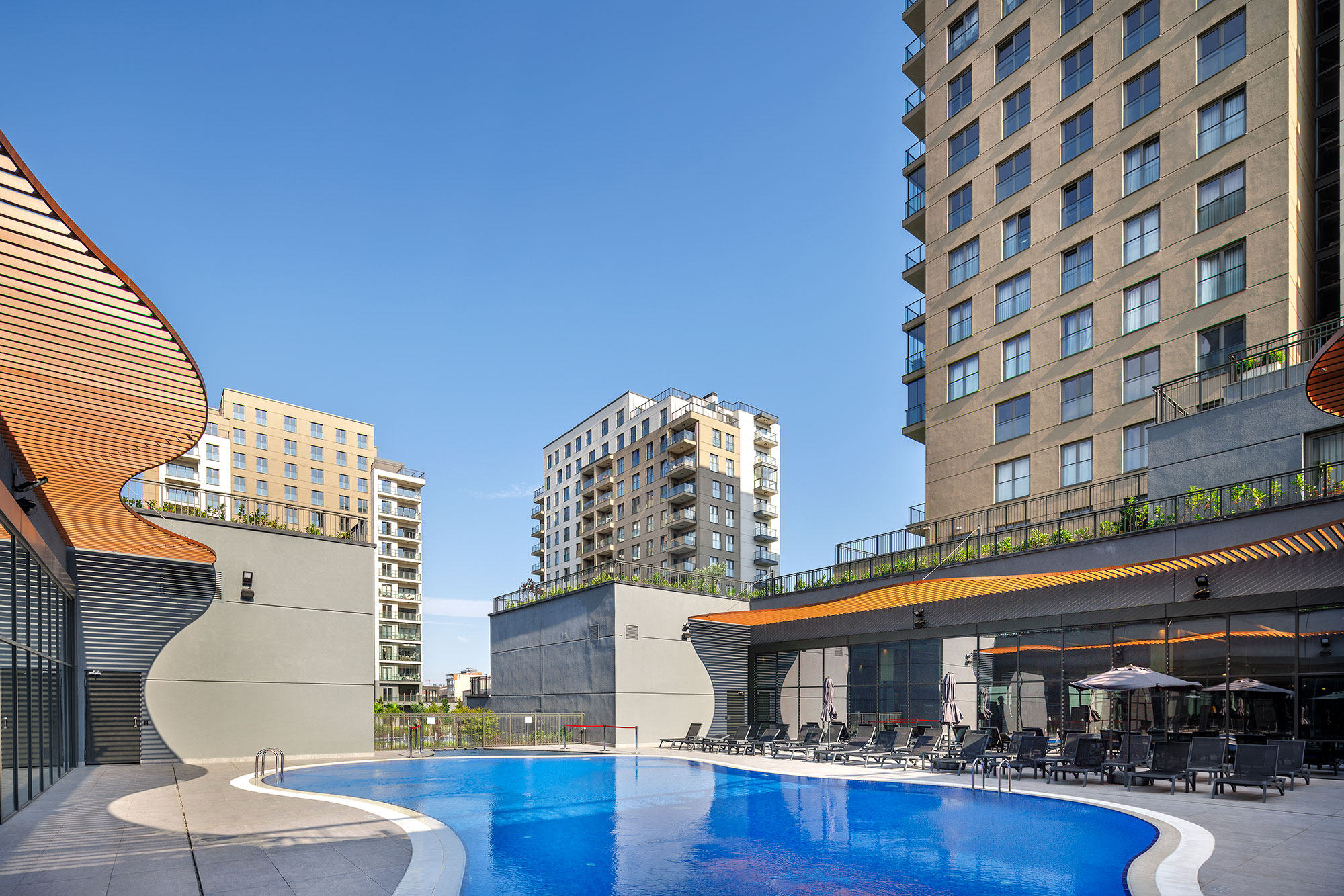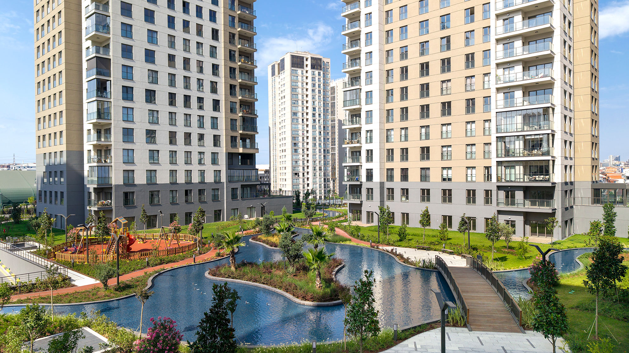 Avrupa Konutları Ata, which rises on 30 acres of land, consists of 413 flats in 5 blocks in total. Avrupa Konutları, with its flats opening to the garden, large and rich landscape area, reflection pools, social areas, stores and aesthetic architecture, makes a privileged life in Atakent, the shining star region of Istanbul.