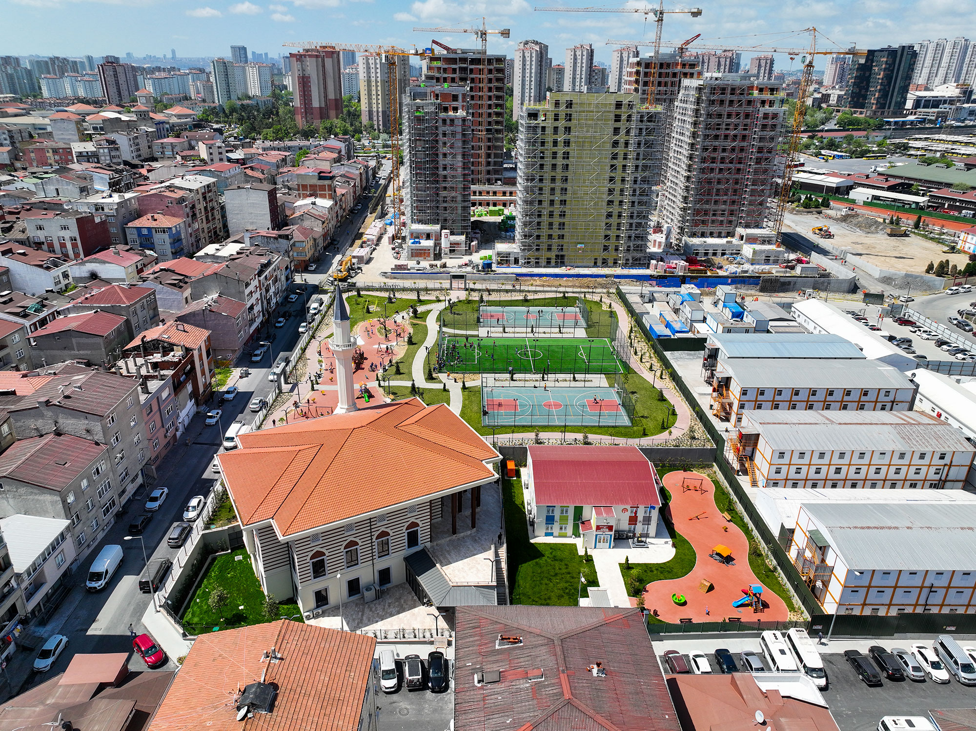 Avrupa Konutları TEM konut projesinin yanı başında okul, cami ve sağlık ocağı ile birlikte inşa edilmiştir.