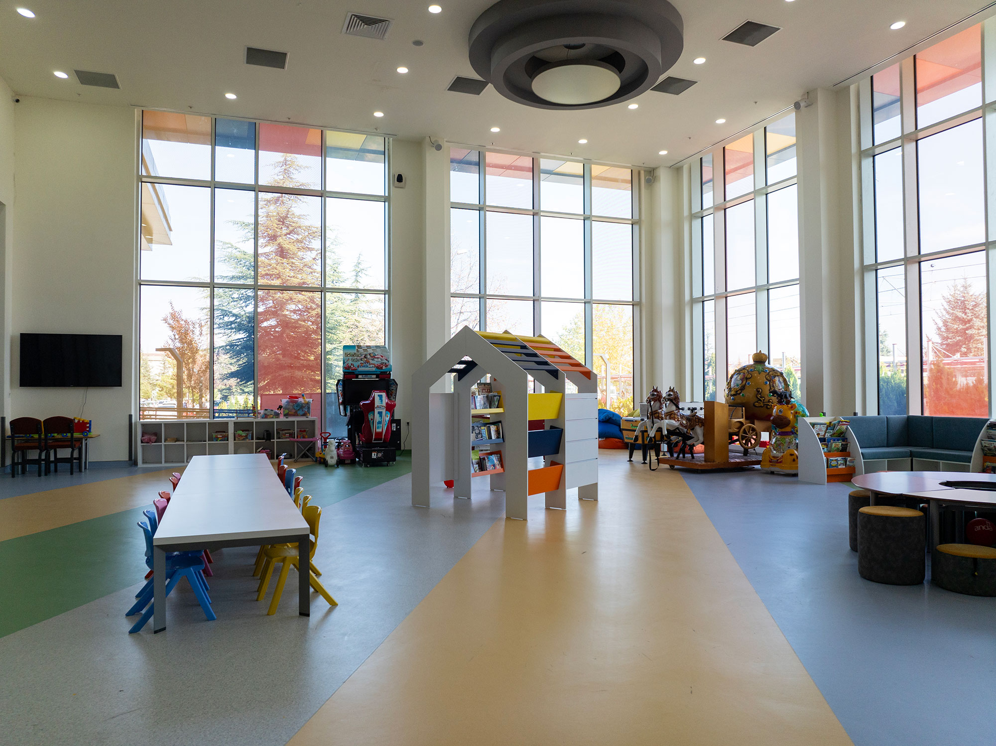 Toplam 145 metrekarelik alanda 1 adet etkinlik ve oyun odası, 1 adet mutfak, 1 adet yemek salonu ve lavabolar mevcuttur. Ayrıca bahçesi bulunmaktadır.